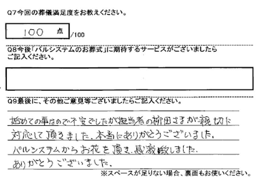 2026年03月30日 一休庵久保山式場でのパルシステムのお葬式「夕凪葬」O様のアンケート