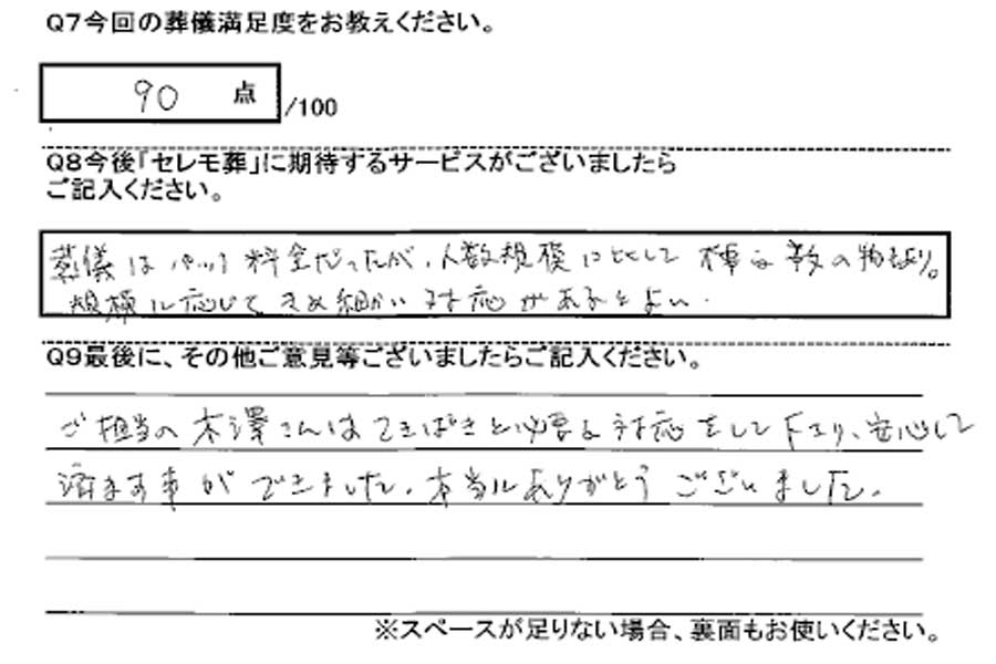 2026年03月30日 禅林寺でのセレモニーのお葬式「セレモ葬」I様のアンケート
